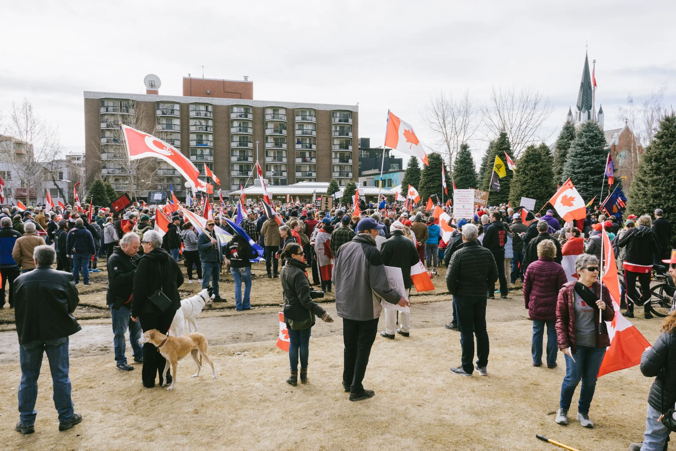 The line of trucks flowing down the highways from Canada's west. People stream down onto bridges and roadsides in support of these fighters. Their intimidating honks of patriotism sounded like they would come crashing into the shores of the East, but they arrived as peaceful waves of song and dance. The peaceful waves were trampled under hooves nonetheless.